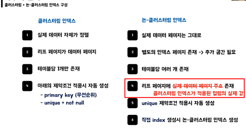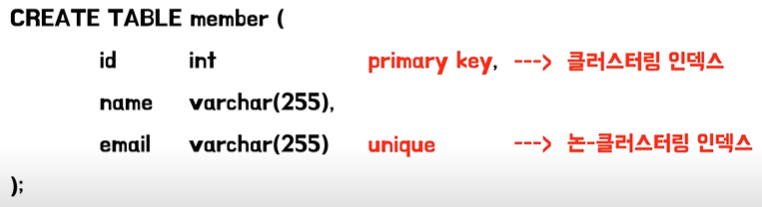 - 직접 index 생성시 논클러스터링 인덱스 생성