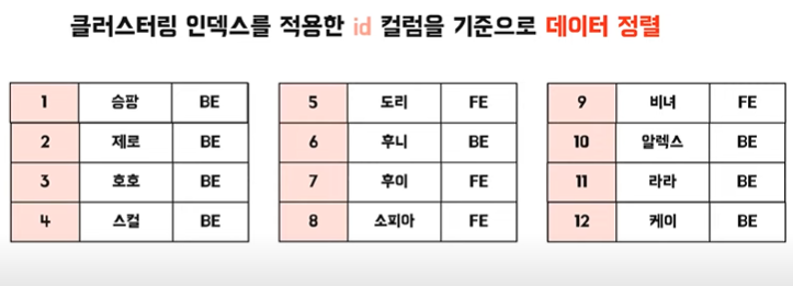 - 대용량데이터에서 조회를 할때 순차적으로 확인을 하면 매우 느림 (기준없이 되어있기때문)