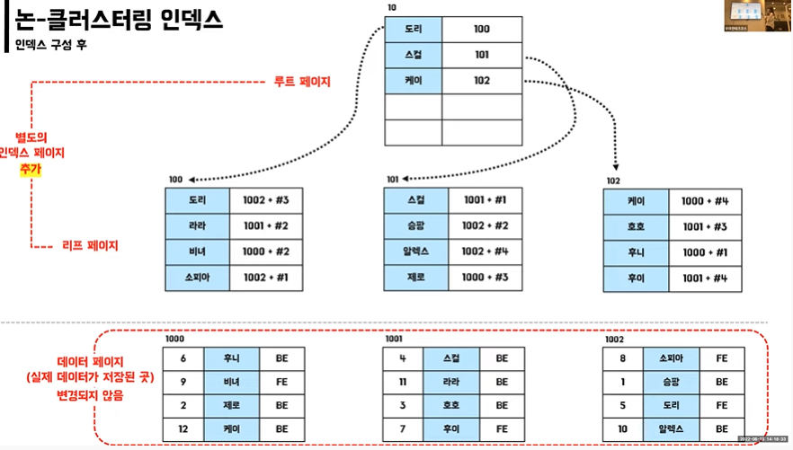 - 별도의 인덱스 페이지 생성 ->추가 공간 필요